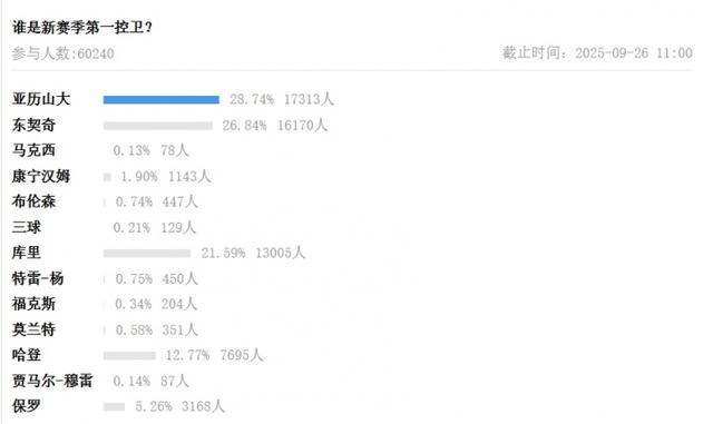 吧友评选NBA新赛季第一控卫:谢伊亚历山大!