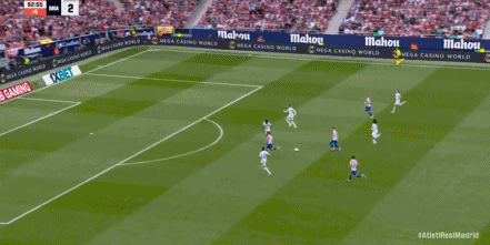 索尔洛特在半场结束之前将比分扳平,阿尔瓦雷斯梅开二度,马竞4-2反超。第93分钟,巴尔韦德出现致命失误,巴埃纳妙传,格列兹曼单刀破门,皇马连丢4球,2-1变2-5。