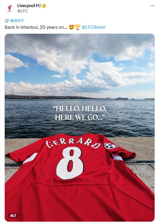 雷速体育10月1日讯 今日凌晨3:00,25/26赛季欧冠联赛阶段第2轮,利物浦将在客场挑战加拉塔萨雷。这是红军时隔20年再度来到伊斯坦布尔,赛前,利物浦官方在社交媒体上晒出了杰拉德的8号球衣,并配文“20年后重返伊斯坦布尔”。