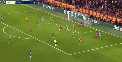 第48分钟,弗林蓬极限下底传中,埃基蒂克脚后跟射门,加拉塔萨雷门将及时反应,将球挡出。