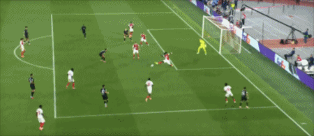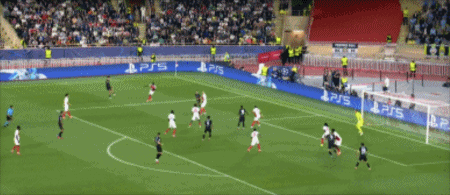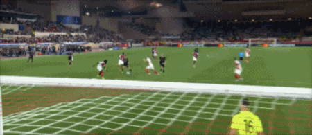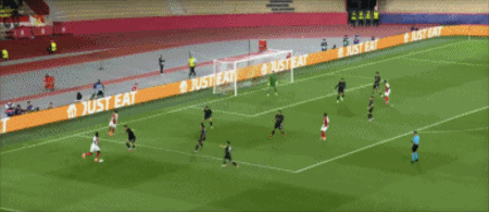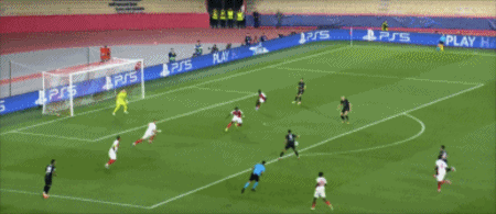 第18分钟,迪亚塔左路传球,特泽弧顶右脚远射轰入世界波,1-1!摩纳哥扳平。