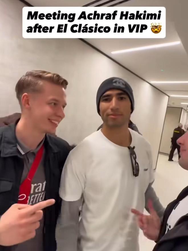 赛后,有球迷在伯纳乌VIP区域遇到了到场观战的阿什拉夫,并与其进行合影。