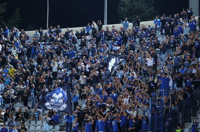 卢卡森头球破门,Alphamega球场的6314名观众沸腾!1-0赢球,帕福斯球迷集体起立,有节奏地鼓掌、摇旗呐喊,庆祝史诗级的欧冠胜利。