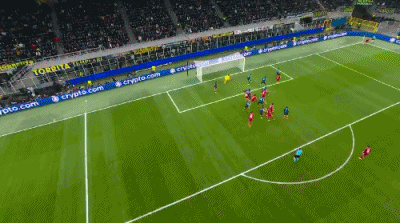 紧接着埃基蒂克左路突破横敲,赫拉芬贝赫18米外发炮,再度被国际米兰门将索默化解。