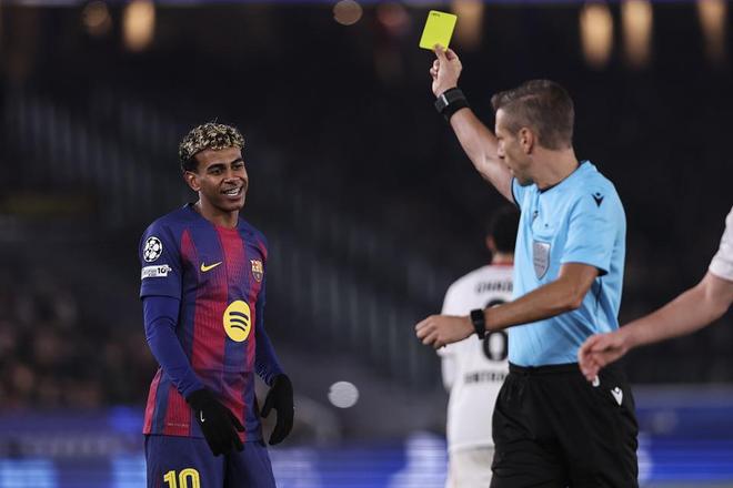 不过3分钟后,亚马尔似乎有些兴奋过头,他在一次边路对抗中,对于法兰克福球员直接使出了剪刀脚的犯规动作。这次犯规也让他吃到黄牌,并且因为累计黄牌将在下轮欧冠停赛。