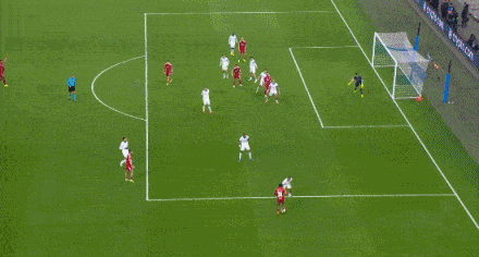 第39分钟,弗林蓬右路传中,萨拉赫中路抢点偏出球门。