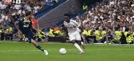 第43分钟,皇马双星连线,维尼修斯利用速度节奏完成过人,之后的传中也相当到位,姆巴佩跟进,无人防守的情况下,居然没能将球打进。