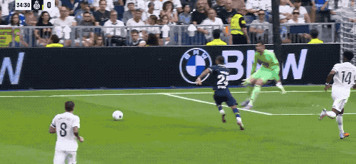 第22分钟,米利唐35米开外突然起脚,皮球如出膛炮弹一般,直挂死角。凭借这一世界波,皇马取得领先。