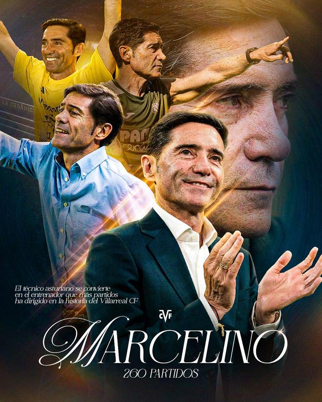 马塞利诺先后两次执教比利亚雷亚尔(2013年1月至2016年8月、2023年11月至今),共带队259场,战绩为128胜65平66负,胜率为49.4%。