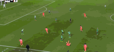 第45+5分钟,感觉不轻,阿布德争顶撞倒孔德