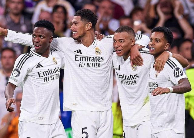 皇马(433):库尔图瓦/劳尔-阿森西奥、赫伊森、吕迪格、弗兰-加西亚/居勒尔、琼阿梅尼、贝林厄姆/罗德里戈、姆巴佩、维尼修斯