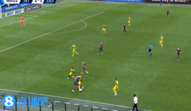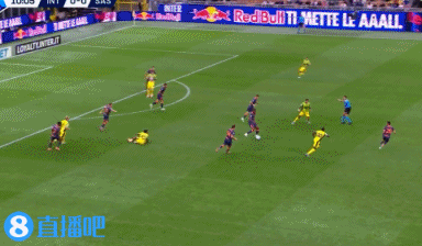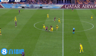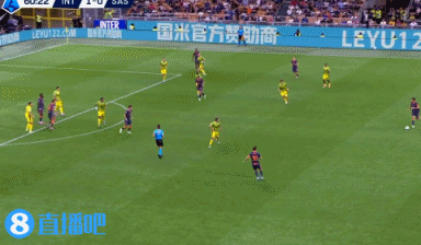 第7分钟,国米前场任意球机会,奥古斯托得球一路推进,连续过人后禁区内小角度射门,被对方门将扑了一下,出了底线。↓