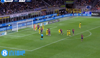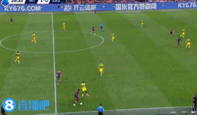 上半场伤停补时2分钟,半场结束,国米暂1-0萨索洛。