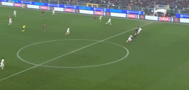 易边再战2球领先的国米有些松懈,第67分钟,热那亚后场长传发起高效进攻,卡里克尔精准的超远距离过顶长传,维蒂尼亚高速插上接球内切突入禁区获得单刀机会,维蒂尼亚变向过掉出击的门将索默后打空门得手,热那亚1:2扳回一球。第87分钟,国米左侧角球机会,图拉姆前点抢点甩头攻门,莱亚利奋力将球扑出。两队都未能再改写比分,最终国米2:1笑到最后。
