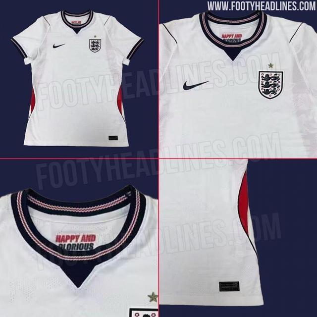 英格兰队新款主场球衣采用了经典的白色底色,搭配细腻的提花图案、肩部的海军蓝镶边以及两侧带有海军蓝边缘的红色插片。球衣领口内侧印有“HAPPY AND GLORIOUS(英国国歌《天佑女王》里的歌词,译为孚民望,心欢畅)”的标语,而队徽上方的一颗金色星星则纪念了1966年世界杯冠军。