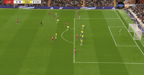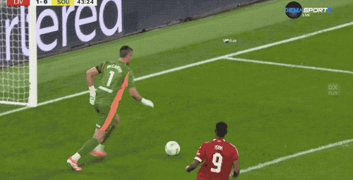 开场不到1分钟,利物浦就在前场完成抢断,伊萨克的射门,被南安普顿门将扑了出来。