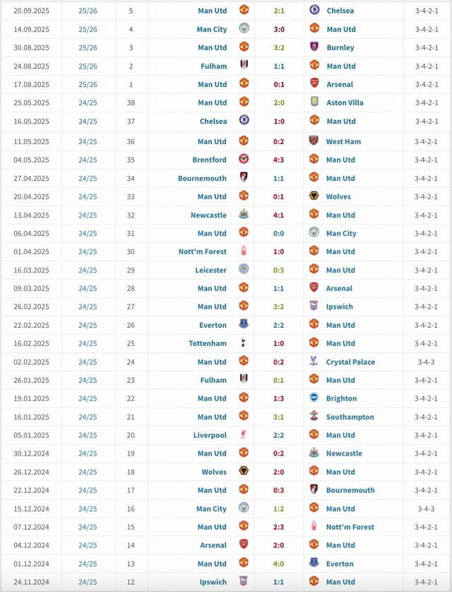 英超第6轮,曼联客场1-3不敌布伦特福德,阿莫林执教曼联以来33场英超比赛,仍未取得任何一场连胜。
