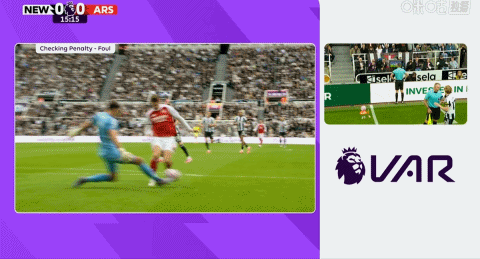 “经回看,纽卡斯尔的守门员触碰到了皮球,不存在犯规行为。最终判罚为坠球。”