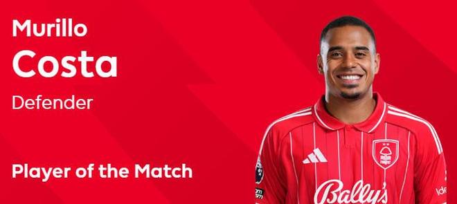 在周六晚进行的英超第12轮比赛中,诺丁汉森林客场3-0击败利物浦,赛后,森林后卫穆里略被评为本场比赛最佳球员。