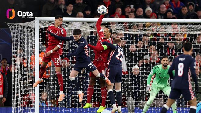 欧冠联赛阶段第5轮,利物浦主场对阵埃因霍温,上半场利物浦后卫范戴克手球送点,据统计,范戴克本赛季各项赛事已3次送点,为英超球员最多。