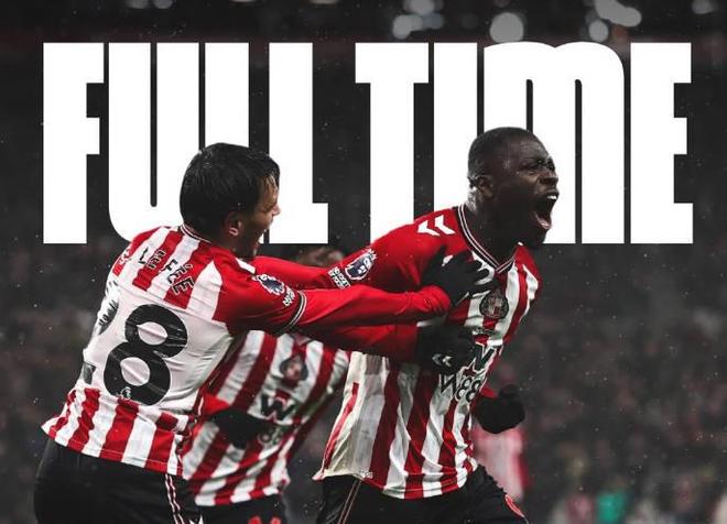 根据统计,桑德兰在2025-26赛季已经赢得了6场英超比赛,与2016-17赛季整个赛季的英超胜场数相同,本场比赛他们在0-2落后的情况下逆转,以3-2获胜,并将英超主场不败纪录延长至7场(4胜3平)。