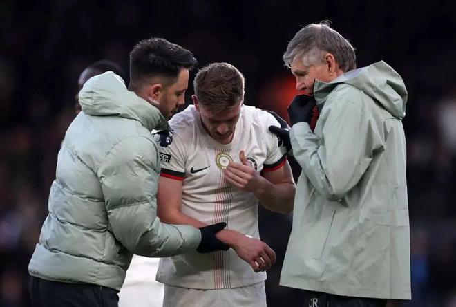当时德拉普冲入禁区争顶,与樱桃后卫马科斯·塞内西撞在一起,两人落地姿势都很别扭。德拉普肩膀明显不适,医疗组干脆把他的球衣临时改成吊带,护送他离场。