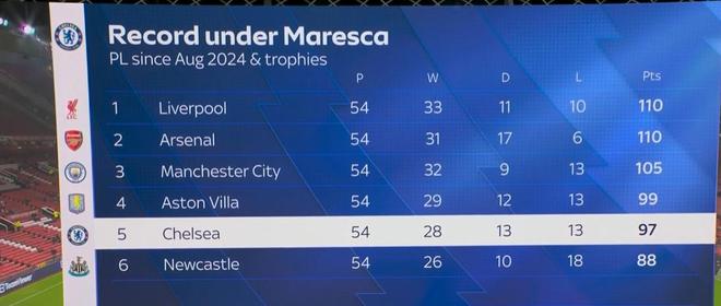 主持人:当然,我们也应该谈谈他在切尔西目前为止所做的工作。从数据层面来看,他上任以来拿到的积分让球队排在第五位。有意思的是,切尔西与前两名利物浦和阿森纳之间的差距并不算大。自从马雷斯卡上任以来,差距只有13分。而且正如杰米所说,他已经赢得了奖杯——欧协联和世俱杯。今天他也提到,如果击败卡迪夫城,那将是他执教期间第三次打进半决赛。那么,如果这真的是一次关系破裂,而且裂痕继续扩大,杰米,谁会在这种情况下损失更大?是切尔西,还是马雷斯卡?