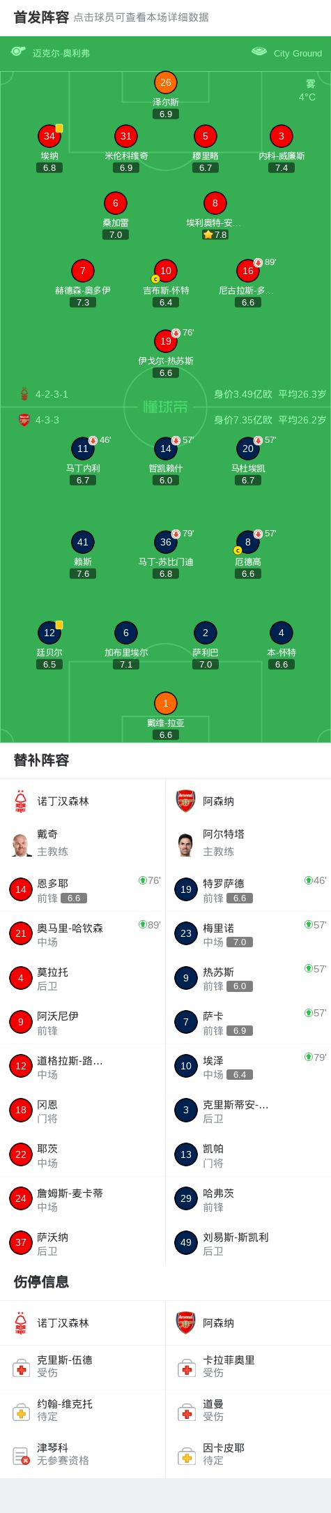 北京时间1月18日英格兰足球顶级联赛 联赛 第22轮,诺丁汉森林主场对阵阿森纳。最终比分诺丁汉森林 0-0 阿森纳。