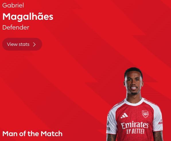 最终经过英超官网球迷投票,加布里埃尔以39%的得票率当选全场最佳球员。