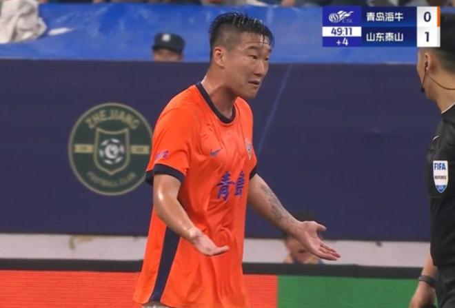 9月20日,中超第25轮,山东泰山客场挑战青岛海牛。上半场补时阶段,海牛球员刘军帅禁区里手球,主裁判给了泰山点球,而这个判罚引起了巨大争议。