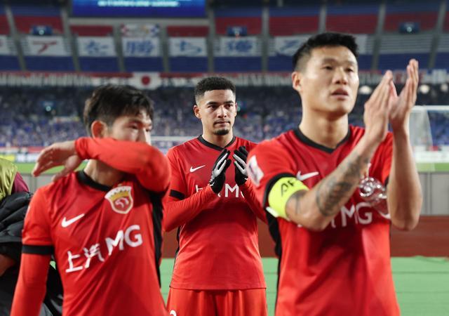 新2025年3月11日,上海海港队球员蒋光太(中)在比赛后向球迷致意。 当日,在日本横滨举行的2024-2025赛季亚冠精英联赛八分之一决赛次回合比赛中,中超上海海港队客场1比4不敌日本J联赛横滨水手队,最终两回合总比分1比5不敌横滨水手队,无缘八强。 新华社记者 贾浩成 摄