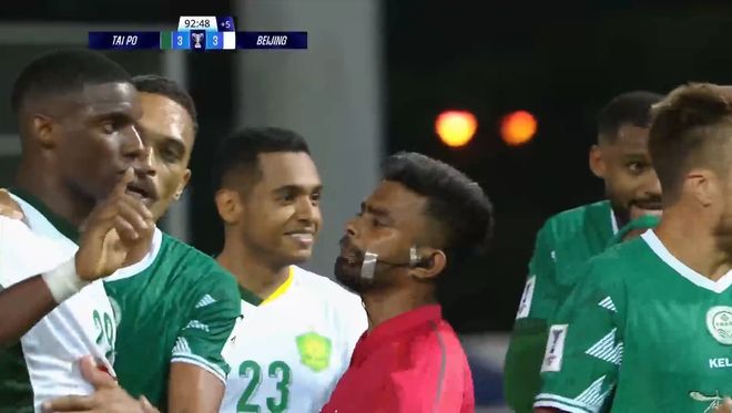 下半场北京国安加强进攻在第53和第83分钟也分别各进1球,一举逆转场上比分,把比分从2比1改写为2比3。客队领先了!被反超后,大埔队急了!发起一波波猛攻,也终于在第90分钟时再进1球,从而绝平北京国安。