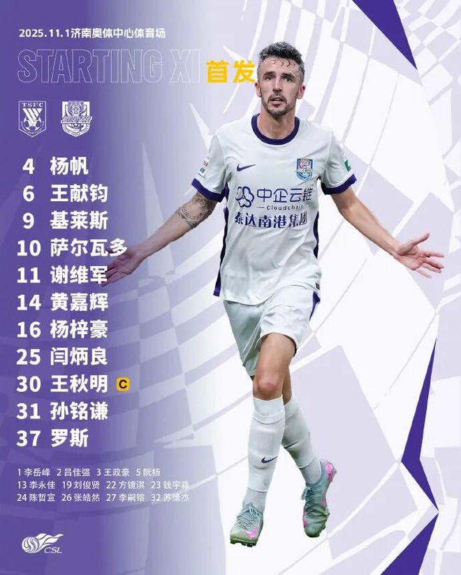 山东泰山队不仅因为全运会抽调走了临时主帅韩鹏,同时也有多名年轻球员被征调,球队指挥权则交给了助理教练唐田,王大雷、洛佩斯因伤缺席,门将位置上起用了本赛季第一次出场的孙启航。
