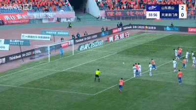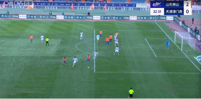 不过,在被罚下一人后,津门虎却马上收获进球。基莱斯在禁区内反复变线后,躲过对手三人包夹,起左脚施射完成破门,将比分改写为1比2。