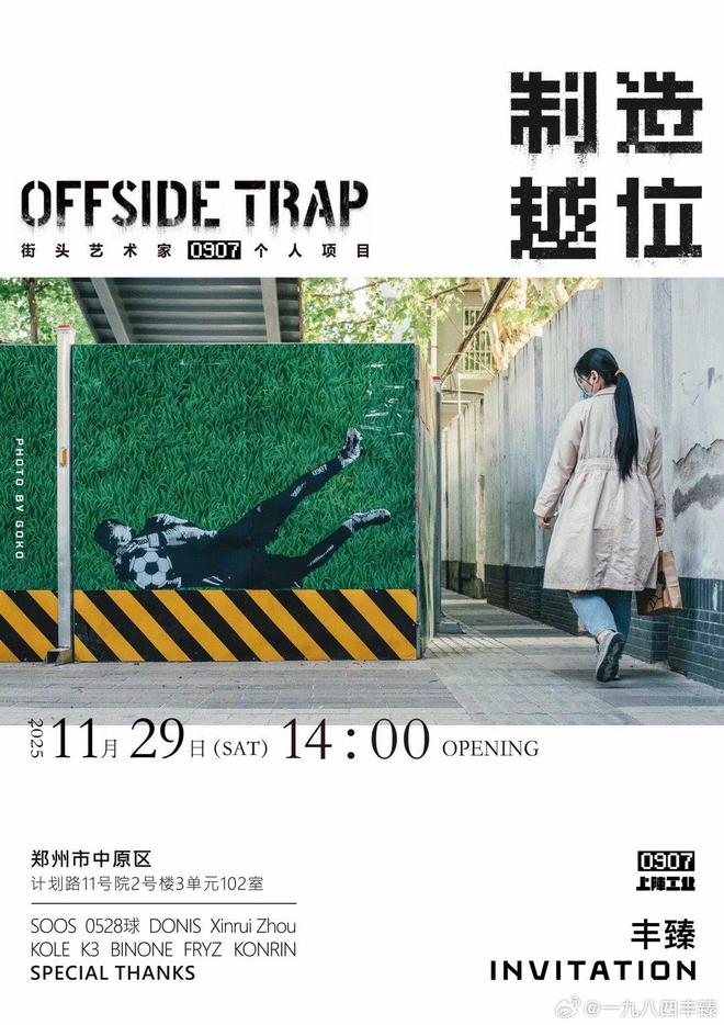 媒体人丰臻写道:“中超越来越有文化了。足协杯决赛前一周,河南球迷、街头艺术家0907个人项目《制造越位》本周日在郑州开展。这就是local。”