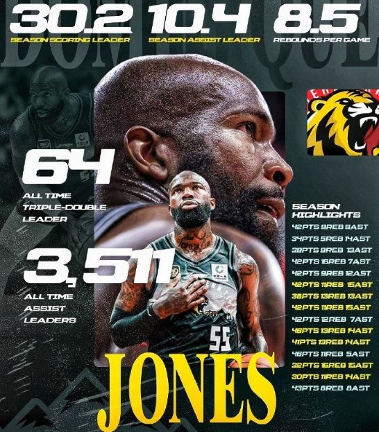 北京时间9月29日,还有半个月就年满37周岁,CBA超级外援琼斯更新社媒,晒出自己的豪华数据海报,并且辟谣否认他要退役。琼斯上赛季效力吉林男篮还有场均30.2分8.5篮板10.4助攻2.3抢断的超级数据,他依然是CBA历史助攻王与三双王。