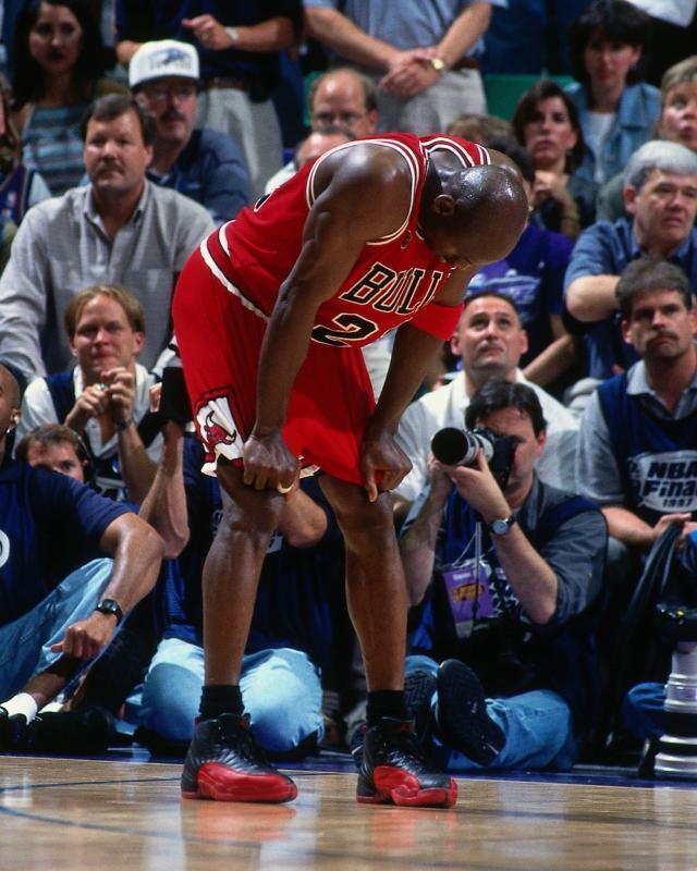 乔丹甚至在生病时也会坚持打比赛,比如著名的“流感之战”,当时乔丹遭遇肠胃流感,但他依然拿下38分,帮助球队在总决赛中以90比88战胜犹他爵士。