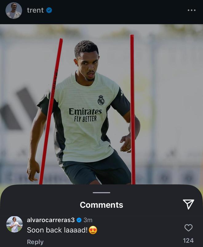 雷速体育10月15日讯 皇马球星阿诺德更新社媒:“很快回归”,在此前晒出的皇马训练照中,阿诺德已归队参加训练。