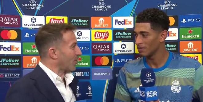 在主场1-0战胜尤文的赛后,本场比赛打入制胜一球的皇马球星贝林厄姆接受了CBS sports的采访。