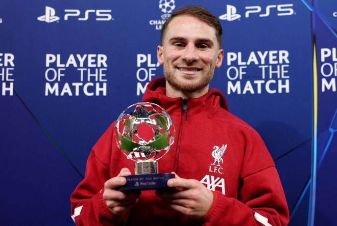 也正是这记重要的头球破门,赛后,麦卡利斯特当选欧冠官方全场最佳球员。上月的国家队友谊赛,他也打进一球,但随后在俱乐部表现一般,今晨这个最佳奖杯,对小麦当然是一个巨大的鼓舞。