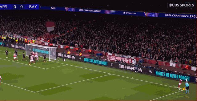 第48分钟,基米希解围失误,萨卡得球后进入禁区抽射打高。