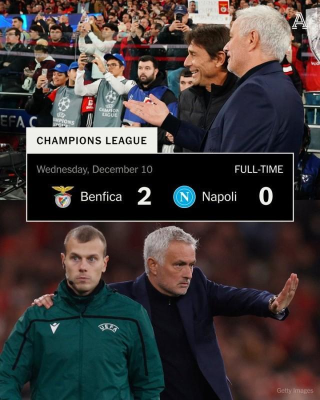 欧冠联赛阶段第6轮,本菲卡主场2比0那不勒斯,第20分钟里奥斯首开纪录,第49分钟巴雷罗锁定胜局。本菲卡欧冠2连胜,距离附加赛区域仅1分。那不勒斯6轮欧冠3负,全是客场,队史首次欧冠客场5连败。 孔蒂把输球归咎于一周双赛造成的伤病和疲劳,指出本菲卡休息时间更足,“如果连续六周三天一赛,肯定会付出代价……我们就像一台需要时间预热的柴油发动机。”穆里尼奥不以为然:“说本菲卡体能更好,感觉像是在找借口。”他认为自己的战术变化才是取胜关键。
