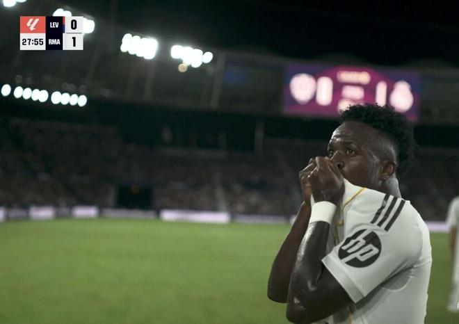 此役客场对阵莱万特,首发出战的维尼修斯在比赛第28分钟接巴尔韦德助攻破门,为皇家马德里取得1-0领先。