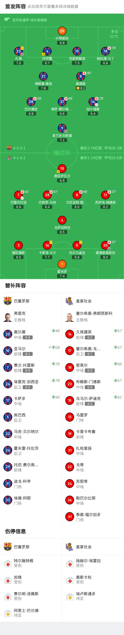 第31分钟,巴雷内切亚助攻,奥德里奥索拉破门,巴萨0-1