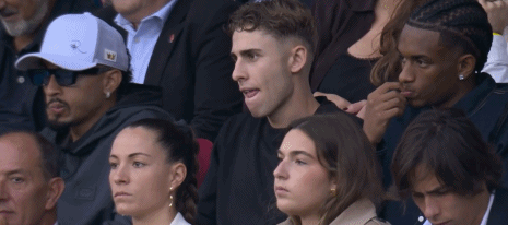 第8分钟,镜头给到场边,拉菲尼亚等人看台观战