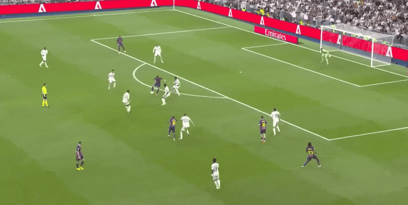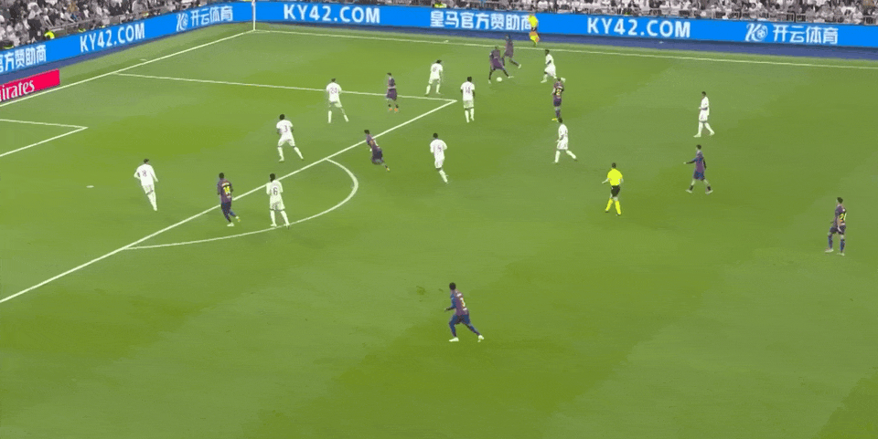 亚马尔右路内切过人后起脚远射,直接将球踢飞