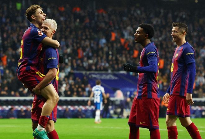 巴萨与西班牙人的比赛踢得非常激烈。虽然巴萨占据控球优势,但防守漏洞百出,让西班牙人多次打穿后防线。幸好门将霍安-加西亚有如神助,做出6次关键扑救,才帮助巴萨力保球门不失。多次死里逃生的巴萨在第86分钟才终于打破僵局。替补上场的奥尔莫远射破门。随后,莱万多夫斯基也进球了。两名替补神兵用进球帮助巴萨2-0拿下比赛,各项赛事8连胜!巴萨的这两粒进球都是替补上场的费尔明-洛佩斯送出的助攻。弗里克用神换人彻底扭转了局势。当然,全场最佳必然是屡现神扑的门将霍安-加西亚。
