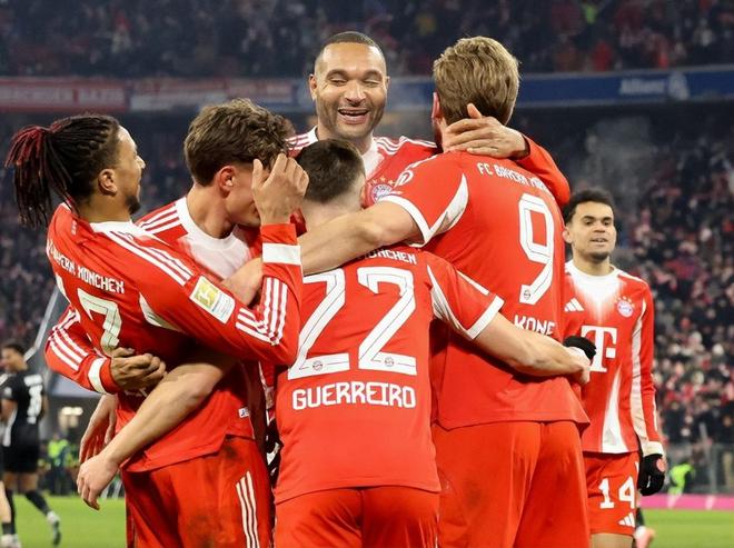拜仁是这一夜赢得最为轻松也是最不客气的球队,上半场拜仁凭借对方的乌龙球和迪亚斯的进球,2:1领先。然而进入下半场却风云突变,奥利塞第50分钟精彩内切兜射破门;3分钟之后奥利塞又制造了延茨的自摆乌龙;第68分钟,格雷茨卡快开任意球,凯恩助攻格雷罗破门;1分钟后,凯恩个人能力精彩兜射继续扩大优势。第76分钟,迪亚斯直塞,奥利塞破门完成双响;第89分钟,格雷兹卡小角度铲射将比分定格在了8:1!16轮过后,拜仁拿到了44分,比第二名的多特多了11分。