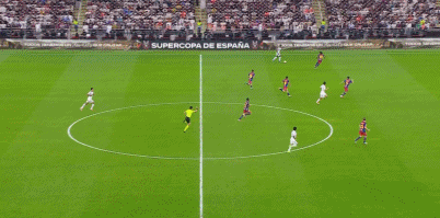 国家德比又是超级杯决赛,西甲2大豪门再次为球迷奉献了一场精彩比赛。上半场第36分钟,费尔明助攻拉菲尼亚推射拉开进球序幕;第45分钟维尼修斯长途奔袭一条龙内切低射扳平比分并打破了长达3个月的进球荒。半场补时阶段,佩德里送出直塞,莱万挑射破门,巴萨2-1再度反超!半场结束前,罗德里戈角球进攻造成巴萨门前混乱,贡萨洛-加西亚倒地补射再次将比分扳平。