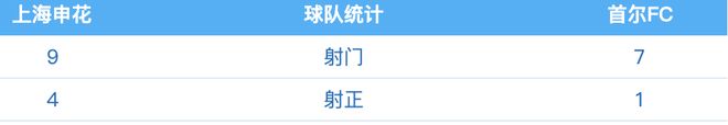 半场比赛结束,双方互交白卷。数据方面,申花9次射门4次射正,而首尔FC只有7次射门1次射正。